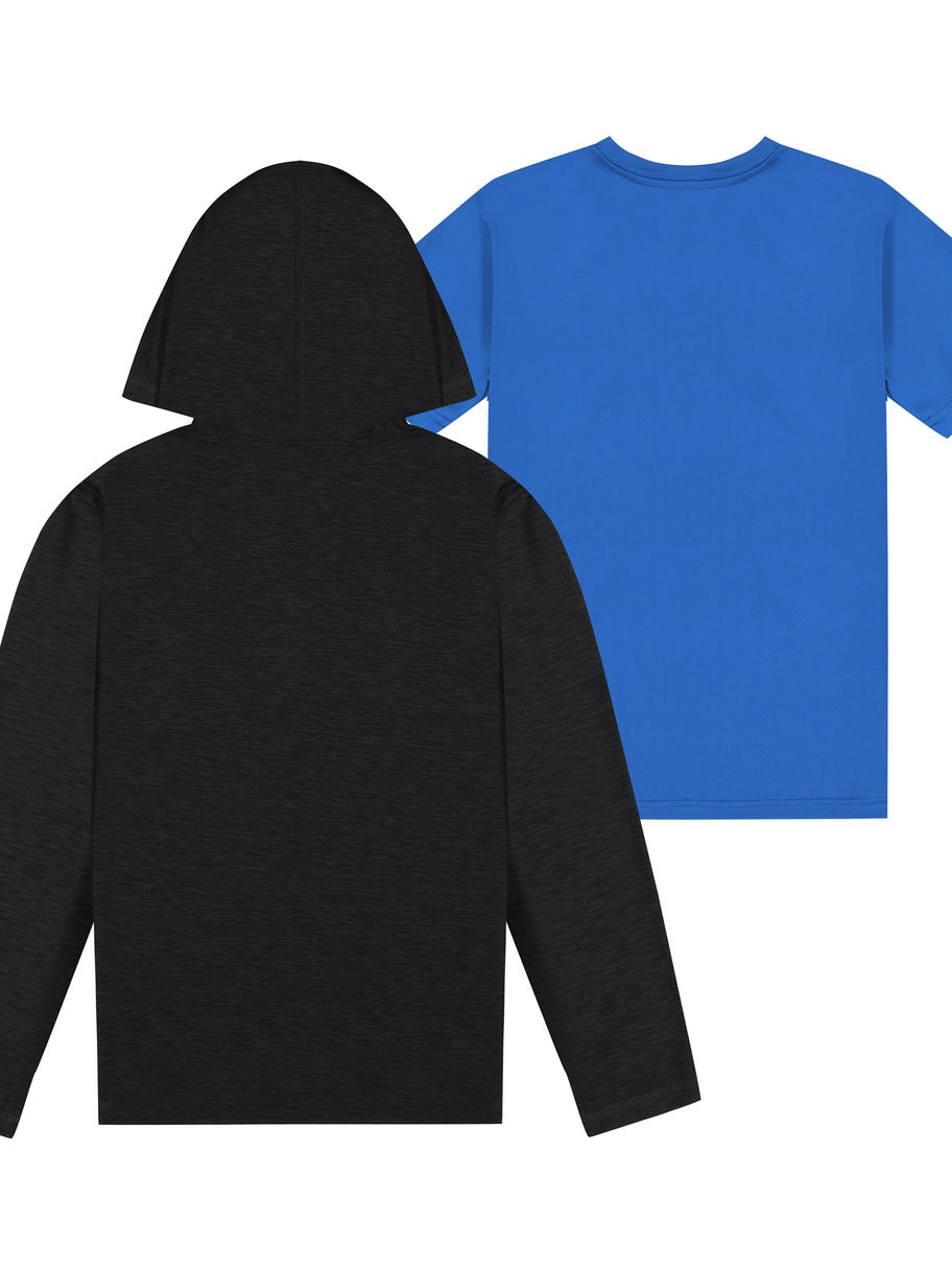 - Each pack includes: 1 short sleeve t-shirt and 1 hooded top