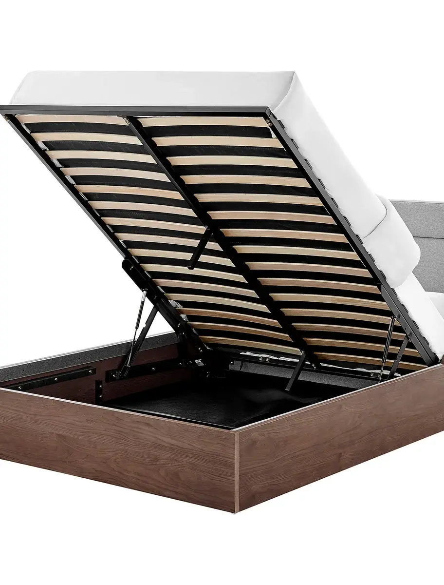 - Pistons-assisted open/shut mattress support and hidden storage