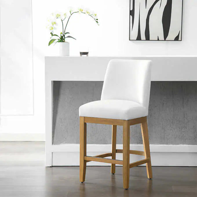 Sleek White Counter Stool with Fabric Upholstery