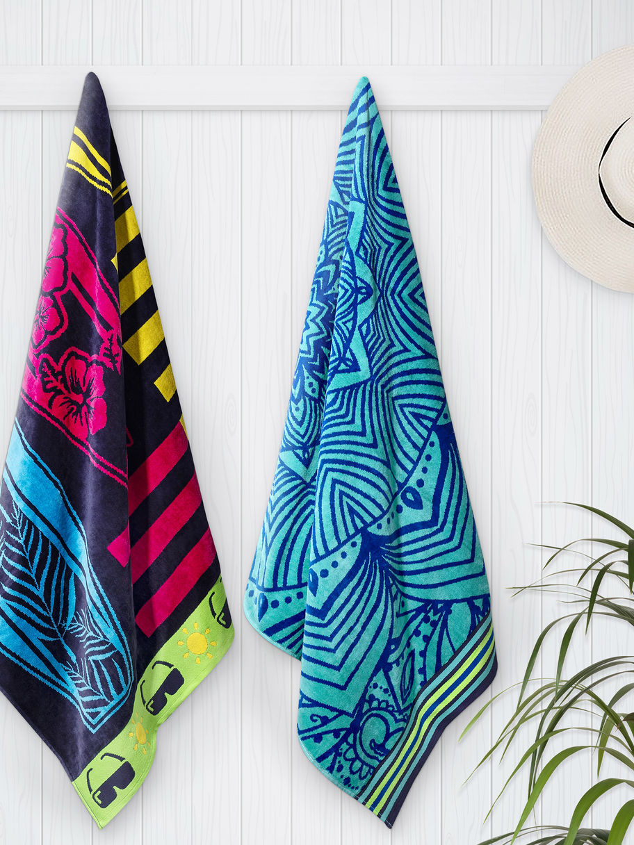Surfing & Cool Mandala Jacquard Beach Towel 2-pack