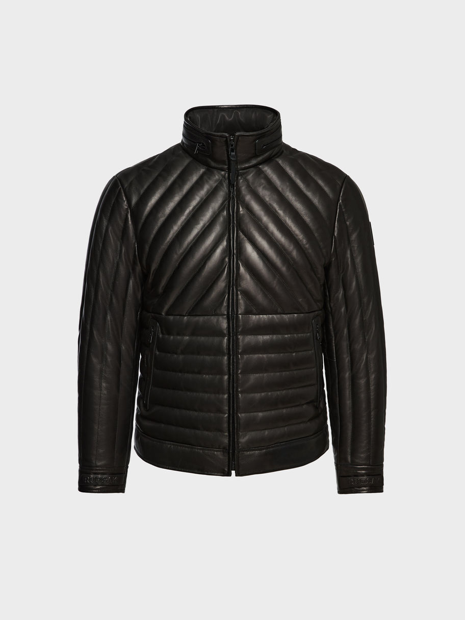 The THOM by RUDSAK is a men's quilted leather jacket designed in luxe, supple leather with an intricate quilted pattern. Featuring a center zipper, mock-neck finish with a zippered hideaway hood, and two side pockets, this jacket combines sophistication and functionality. Refined and visually interesting, the THOM jacket offers a trendy yet timeless look, perfect for making a statement this season. Upgrade your style with the THOM by RUDSAK, the perfect fusion of modern design with an iconic edge.