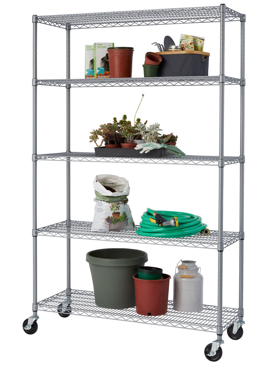 TRINITY NSF certified commercial-grade outdoor wire shelving rack is certified for indoor/outdoor or wet/dry use. With an 800 lb weight capacity per shelf on feet levelers, it can hold your gardening supplies, plants, tools, and everything in between. Assembly requires no tools and uses a slip-sleeve locking system, which adjusts shelves in 1-inch increments.
