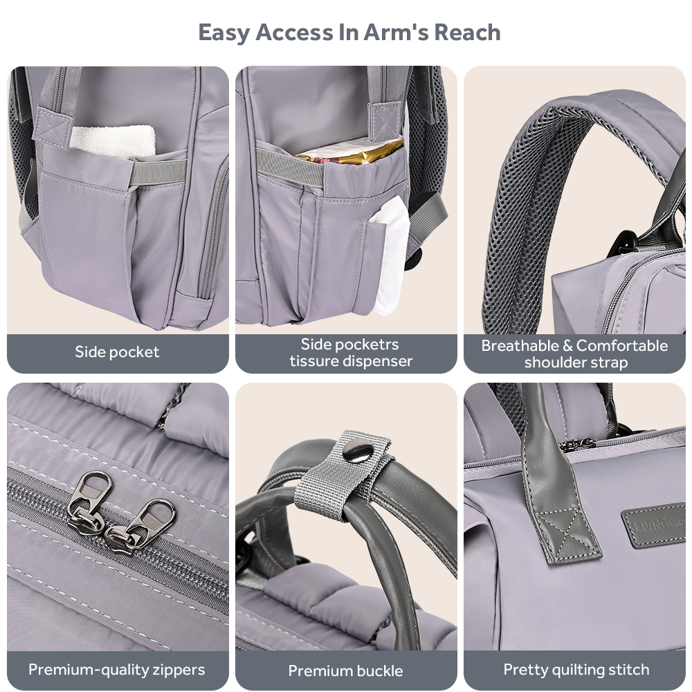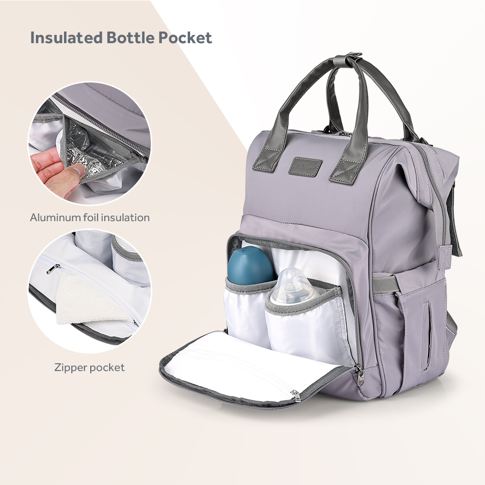 - Two insulated baby bottle pockets to keep the milk warm when on travel.