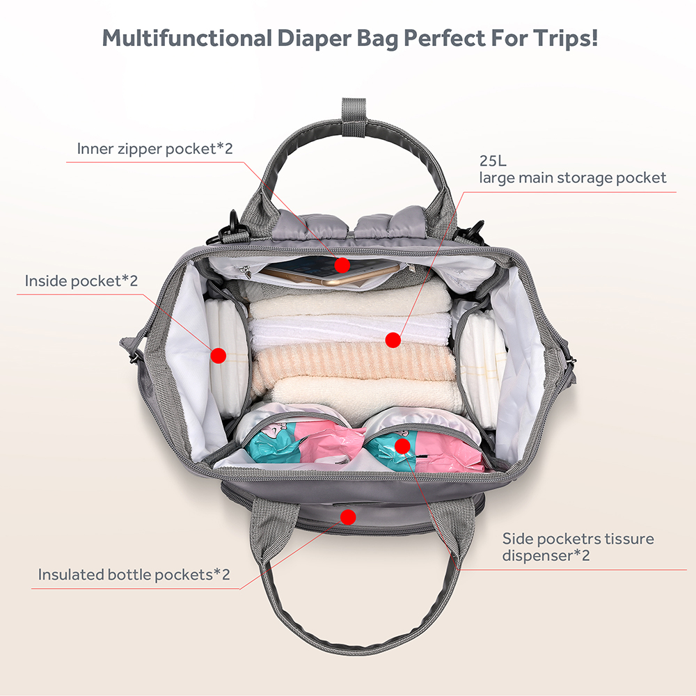 With 25L large capacity and multi-pocket design, it could hold everything for baby and some of you. Multi-pocket could help to make your stuffs in organized and easy to access when you need to get them.